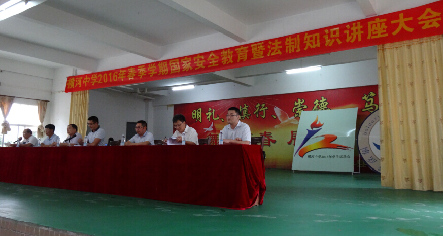 2016年5月19日,广东惠宏信律师事务所法制副主任蔡文杰律师、蔡泽恩律师在横河中学礼堂开展了国家安全教育暨法制知识讲座,博罗县横河镇司法所徐庆广所长出席本次讲座。蔡文杰律师从四个方面展开了《国家安全法》的教育:一、国家安全和国家安全机关;二、国家安全法;三、当前应关注的形势;四、当前应怎样做好国家安全工作。